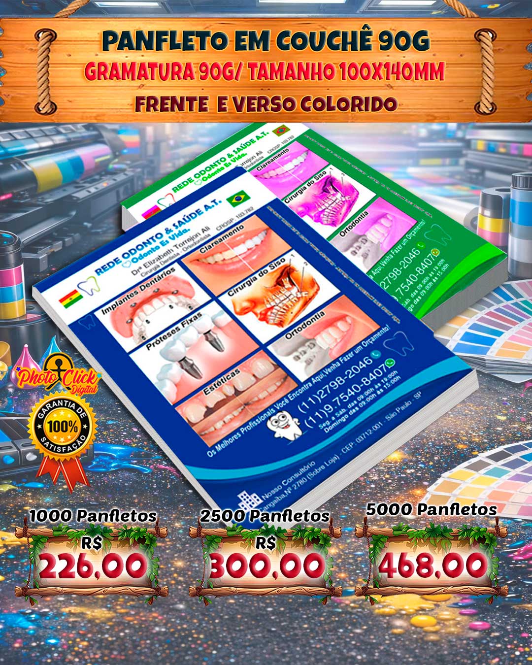 Ideal para divulgação de empresas, promoções, eventos e serviços, o panfleto 100x140mm é uma opção prática, econômica e de excelente impacto visual. Impresso em papel couchê 90g, proporciona cores vivas, ótima definição e acabamento profissional.